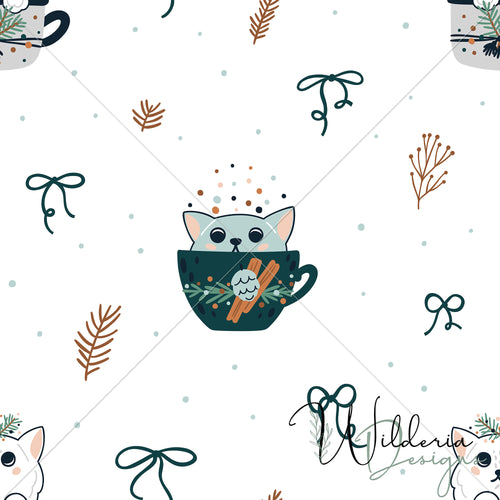 Christmas Kittens Floral Coordinate - White